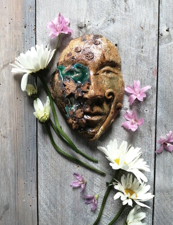 These ceramic, humankind/nature wall pots have been inspired from a recurring theme running throughout my work, conveying a sense of the often fragile balance between humankind, nature and an interest in Folklore and Mythology, often connected to the rythmn of the seasons and the time of the year.