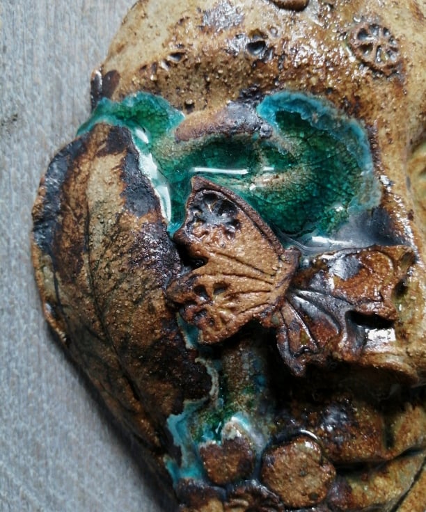 This wall hanging stands alone as a piece of nature inspired art, is fired to a frost proof temperature so can be used safely outdoors surrounded in ivy or brighten up a dark corner, but equally at home inside bringing a bit of the outdoors, indoors.