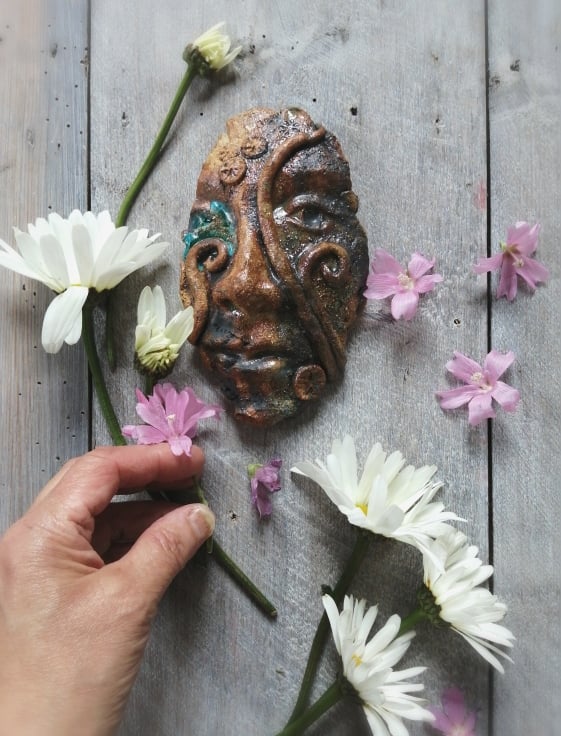 These wall hangings stands alone as a piece of nature inspired art, and are fired to a frost proof temperature so can be used safely outdoors surrounded in ivy or brighten up a dark corner, but equally at home inside bringing a bit of the outdoors, indoors.