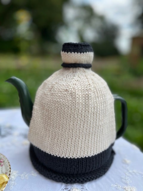 The is monochrome black and natural cotton yarn for a no fuss, but classic line for a modern tea pot or a traditional afternoon tea without all the frills.