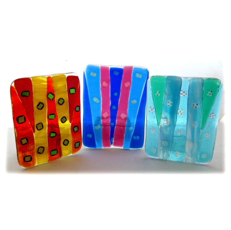 Part of my Joysofglass Fused Glass collection. All handcut by me, decorated and then fused in my kiln.