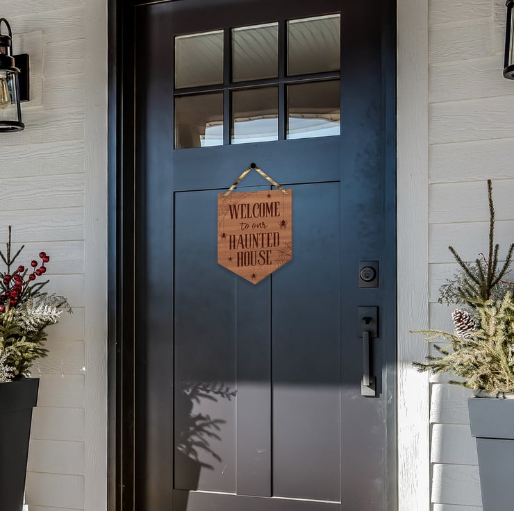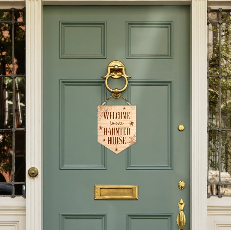 Welcome To Our Haunted House - Spider Front Door Halloween Sign, Wooden Sign