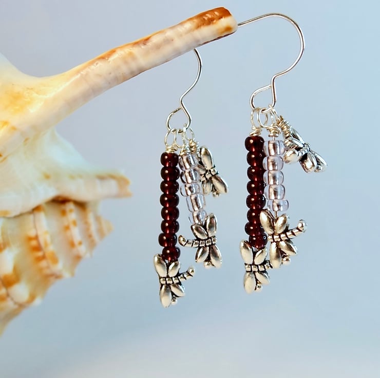 The seed beads are 2mm, silver lined Czech glass and the Tibetan silver dragonflies are nickel and lead free.