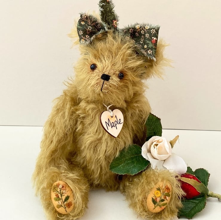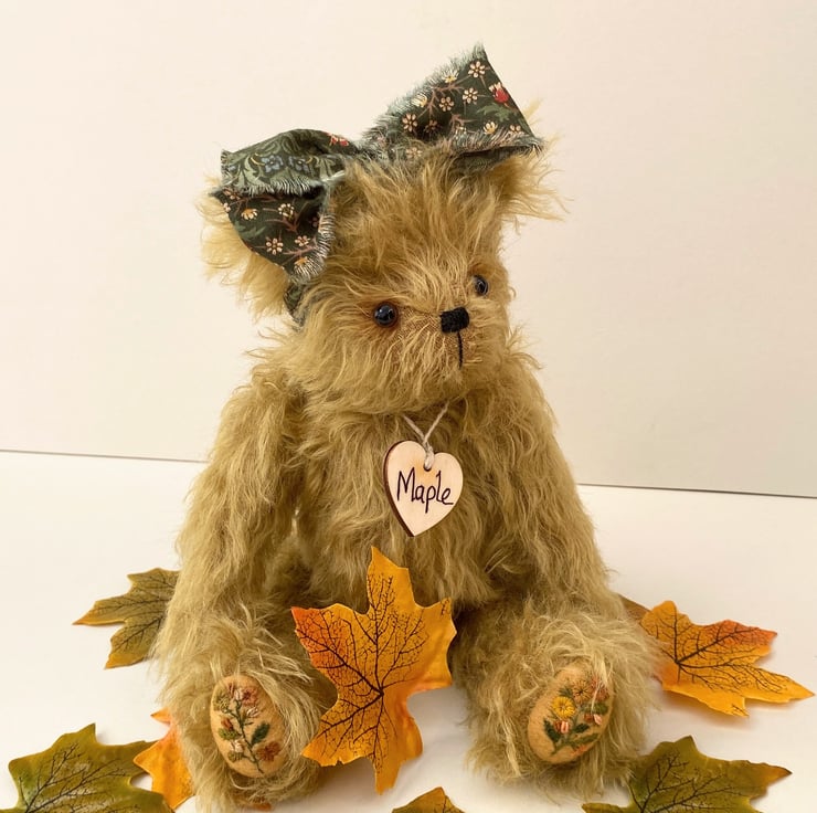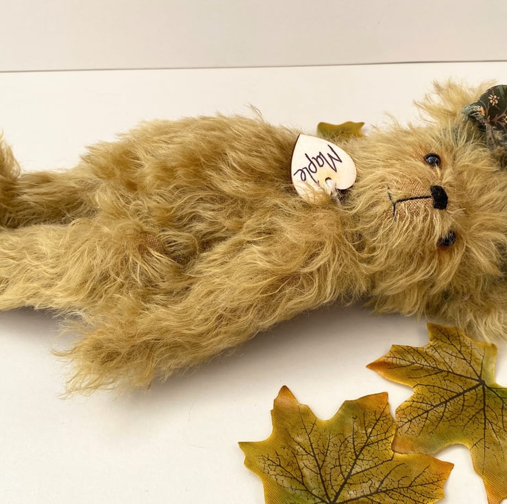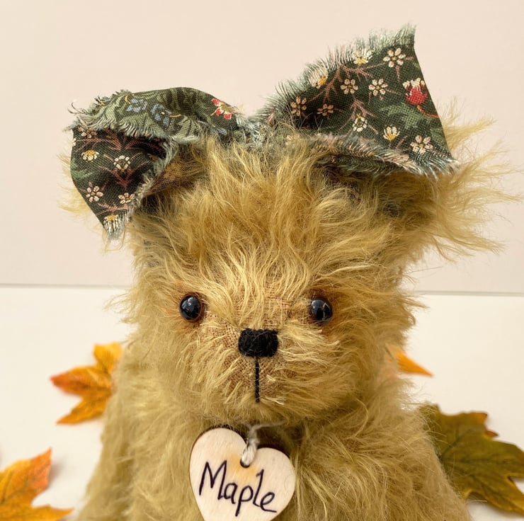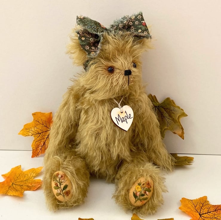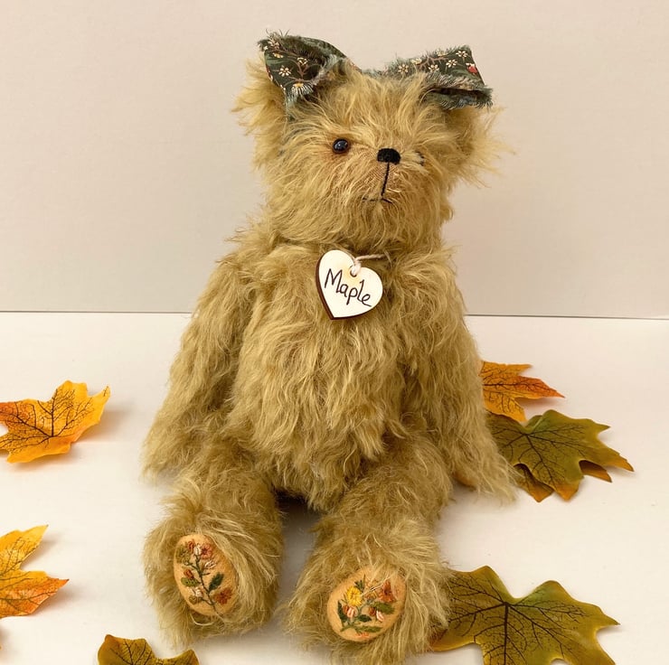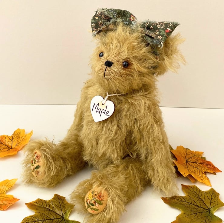 Meet Maple, a beautiful artist bear handmade from luxury Helmbold 25mm whirl mohair in harvest gold.