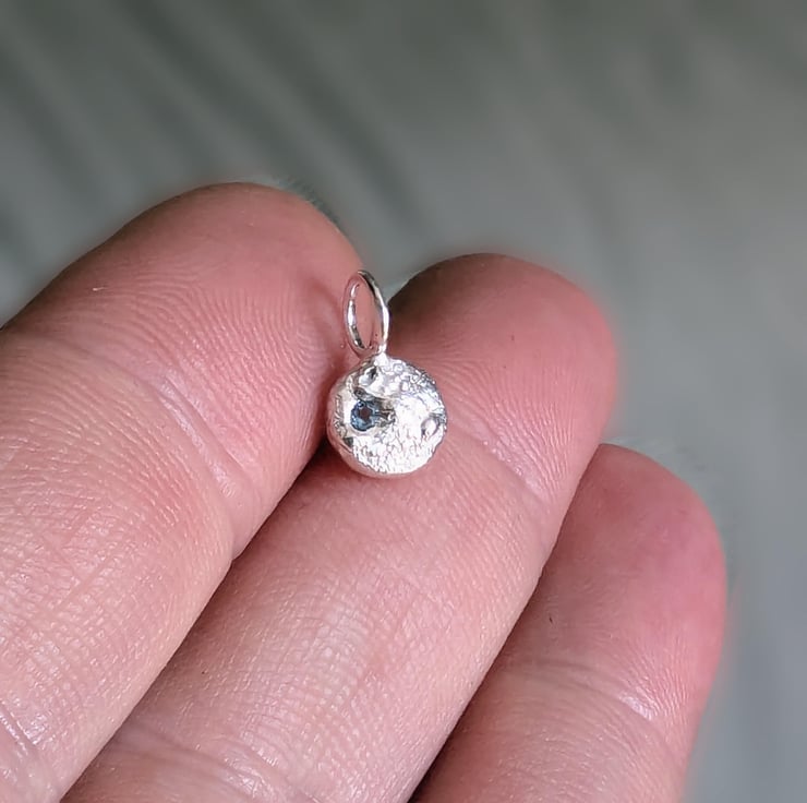 Swiss Blue Topaz pendant, heat fire textured and softly hammered. The heat texture design will make each earring slightly different.