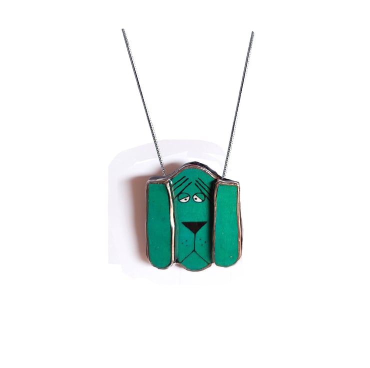 Statement Retro Whimsical Grumpy Dog Head Necklace by EllyMental