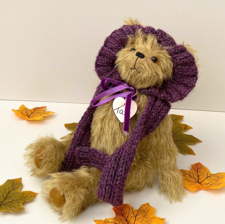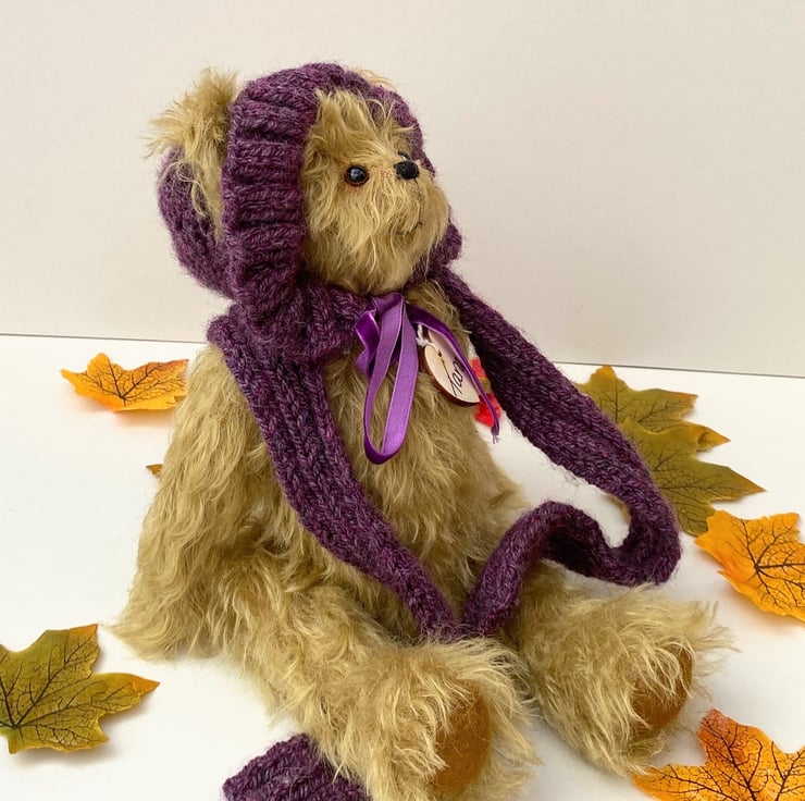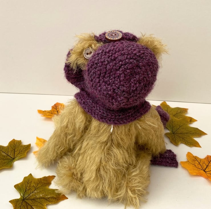 Handmade dressed mohair teddy bear, one of a kind collectable artist bear, designed and created by Bearlescent.