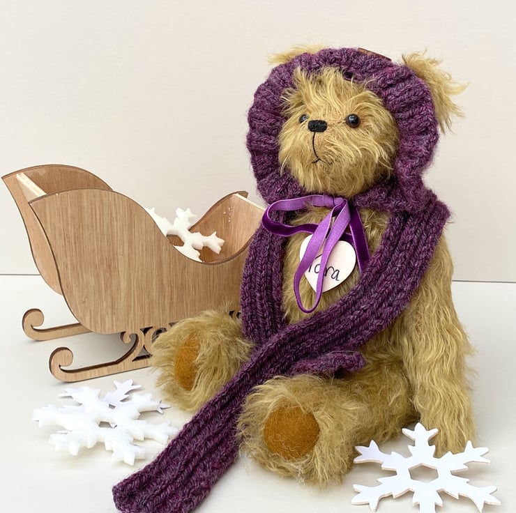 Tara stands at 11" tall, she's a traditionally styled mohair bear.