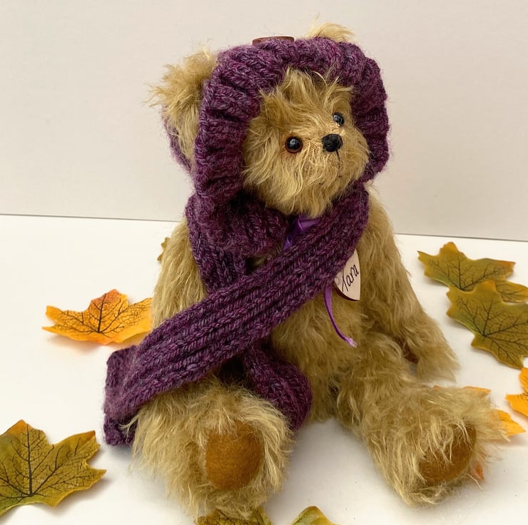 Meet Tara, a beautiful artist bear handmade from luxury Helmbold 25mm whirl mohair in harvest gold.