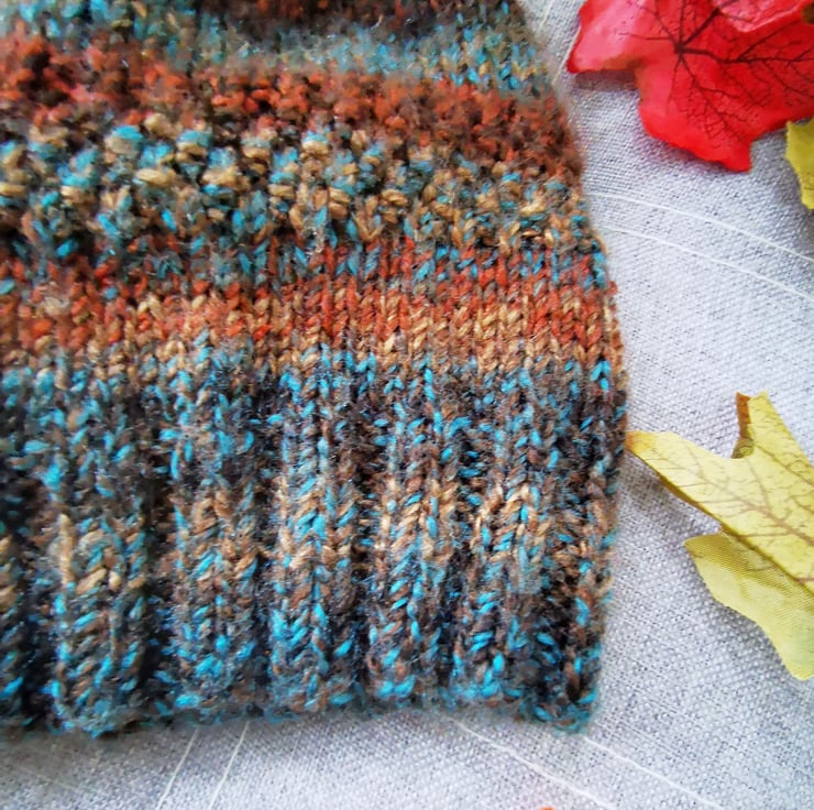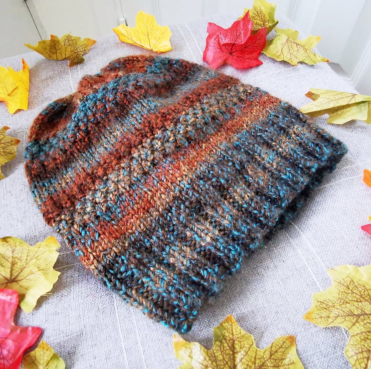- Stylish chunky knitted beanie hat in a beautiful palette of autumn tones