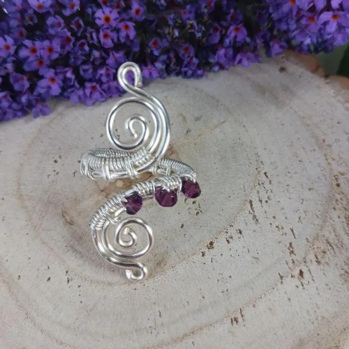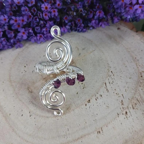 Check out our Handcrafted Adjustable Thumb Ring, made with beautiful purple glass crystals and silver-tone wire. This lovely ring adjusts to fit most sizes, making it a great choice for anyone. Ready to ship, it adds a unique and stylish touch to any outfit. Don’t miss out on this charming piece, order now!