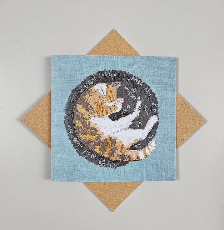 I have a beautiful ginger cat called Nala, and this design was taken from a photograph I took of her fast asleep in her bed!