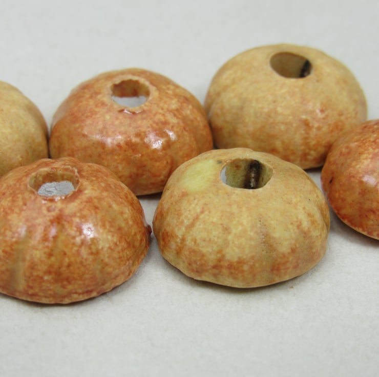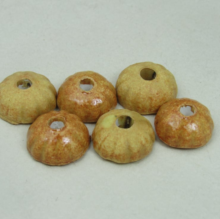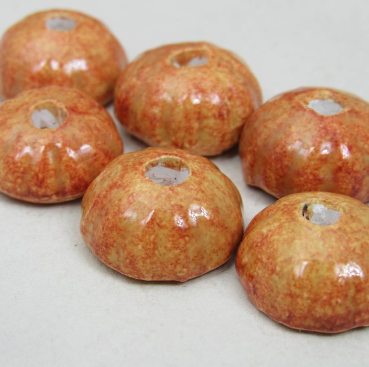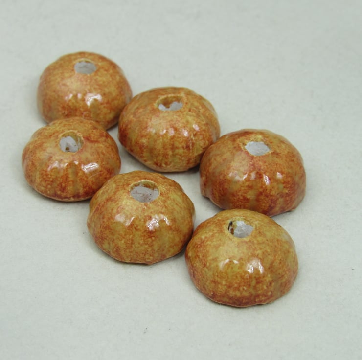 6 Small Bright Copper Half-round Ceramic Flower Beads