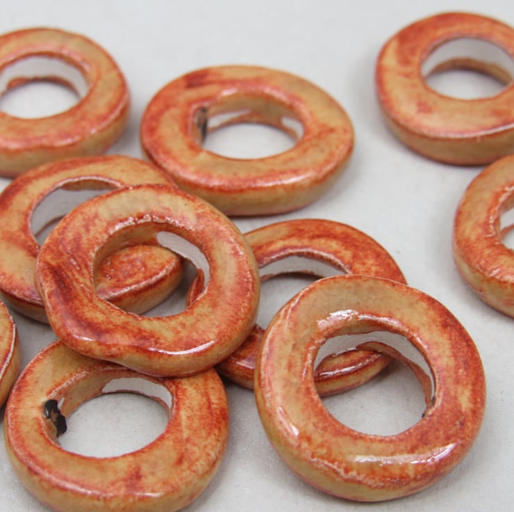 10 Medium Bright Copper Glazed Ceramic Donut Beads