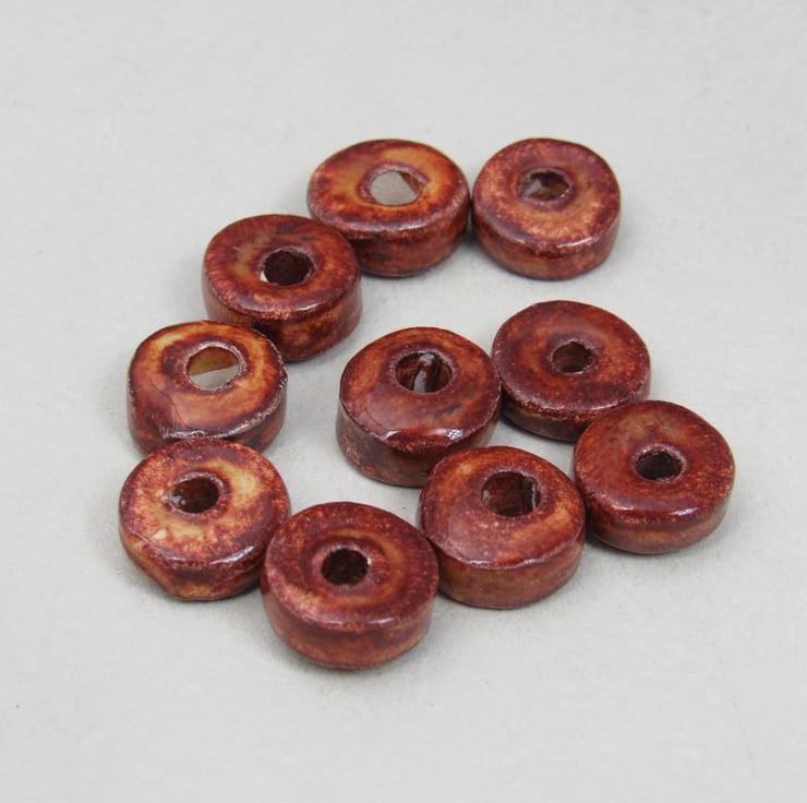 10 small chunky donut beads in white stoneware