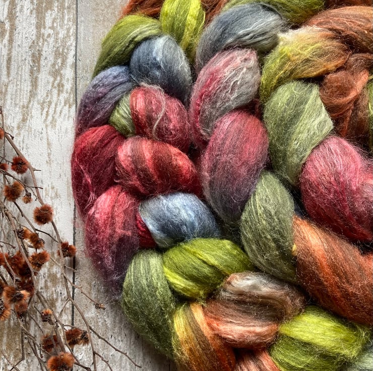Approximately 100g hand dyed by me as shown.