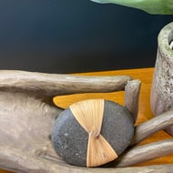 A hand wrapped stone following the Japanese method of Musubi. This means to tie, knot or connect, representing the binding of people, time or spirit. It is also considered as the creative, generative power of the universe, and central to concepts of destiny.