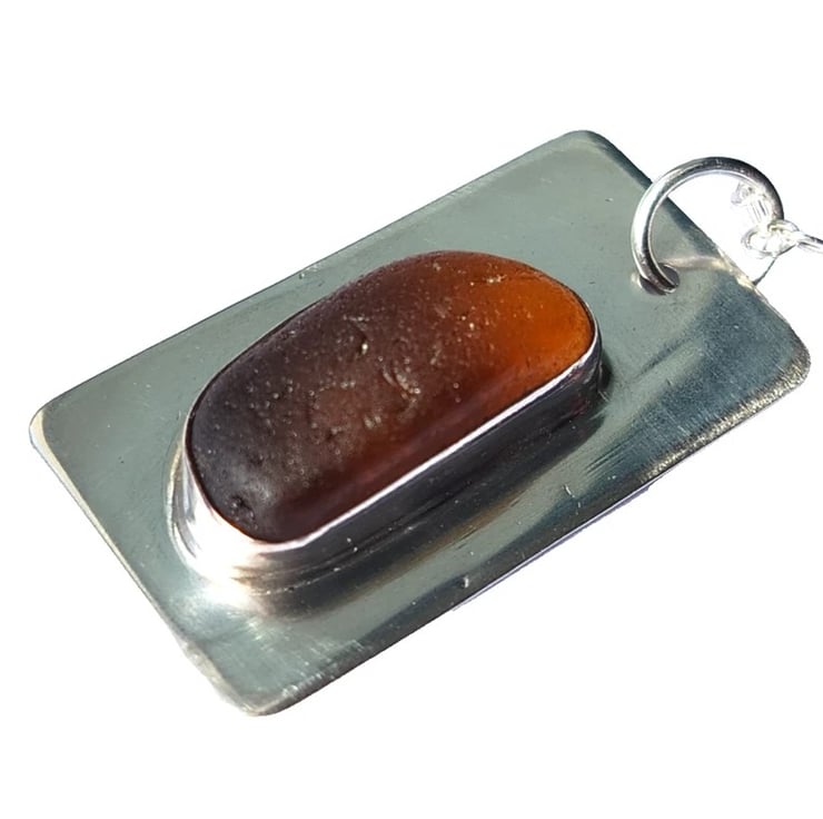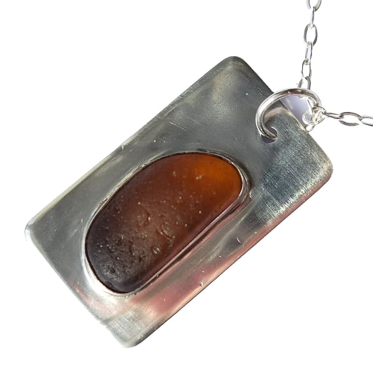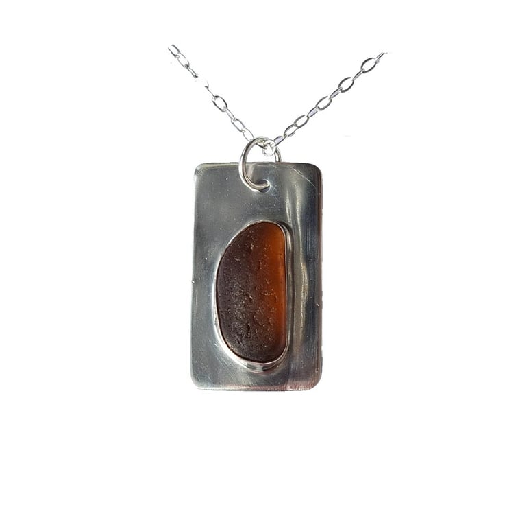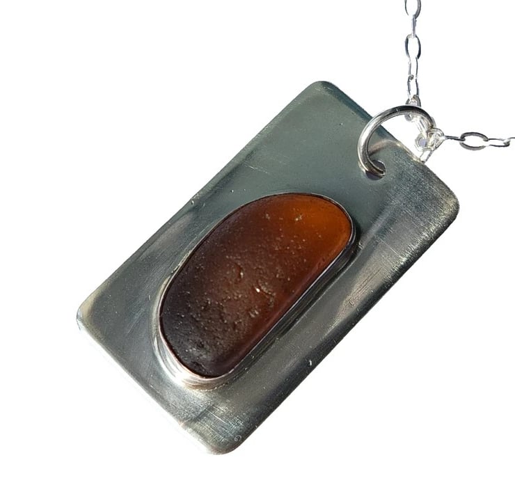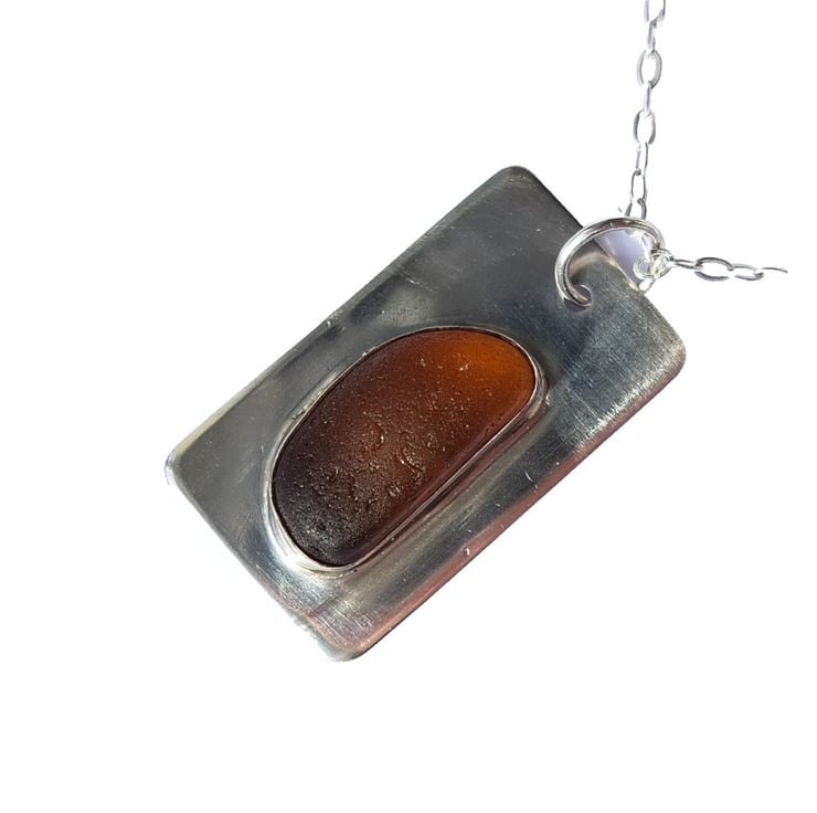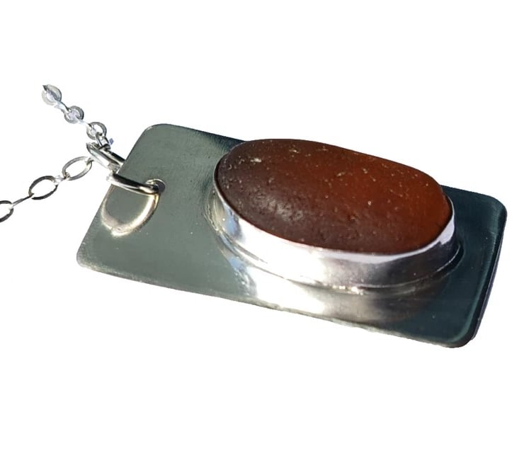 Fine Silver & Recycled "Ecosilver" Sterling Silver handmade pendant with rich brown cornish seaglass