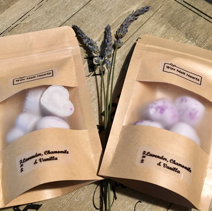 Handmade soy wax melt hearts - bag of 6 in Lavender, Chamomile & Vanilla fragrance