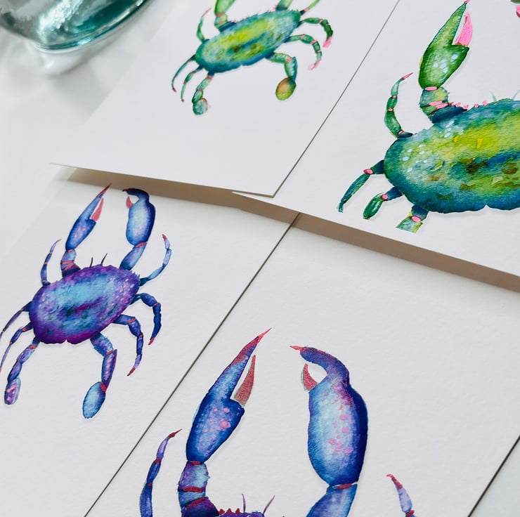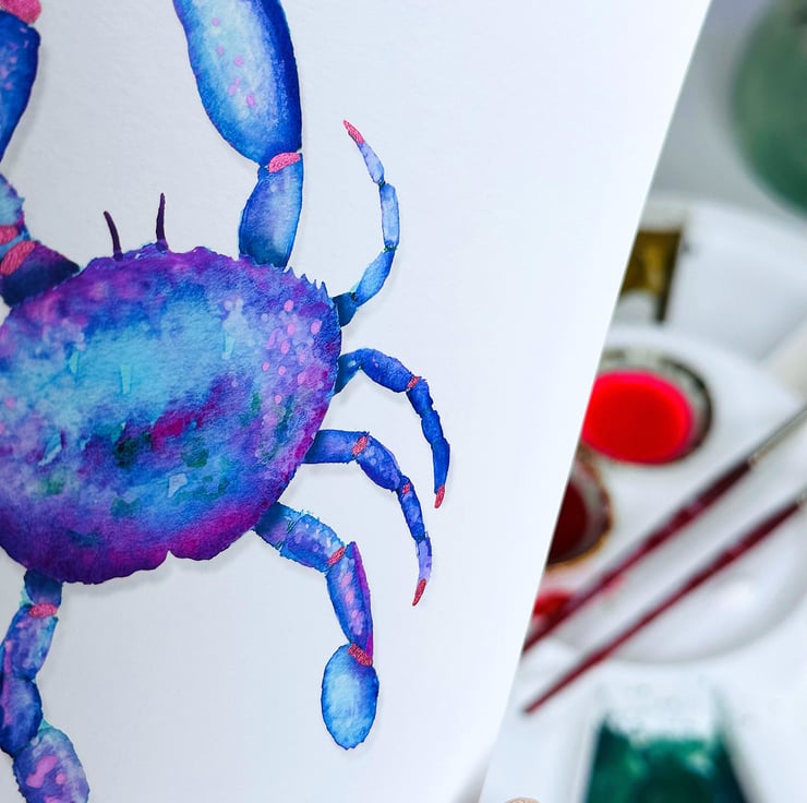 Hand Finished Watercolour A5 Signed Art Print - Vic The Crab!