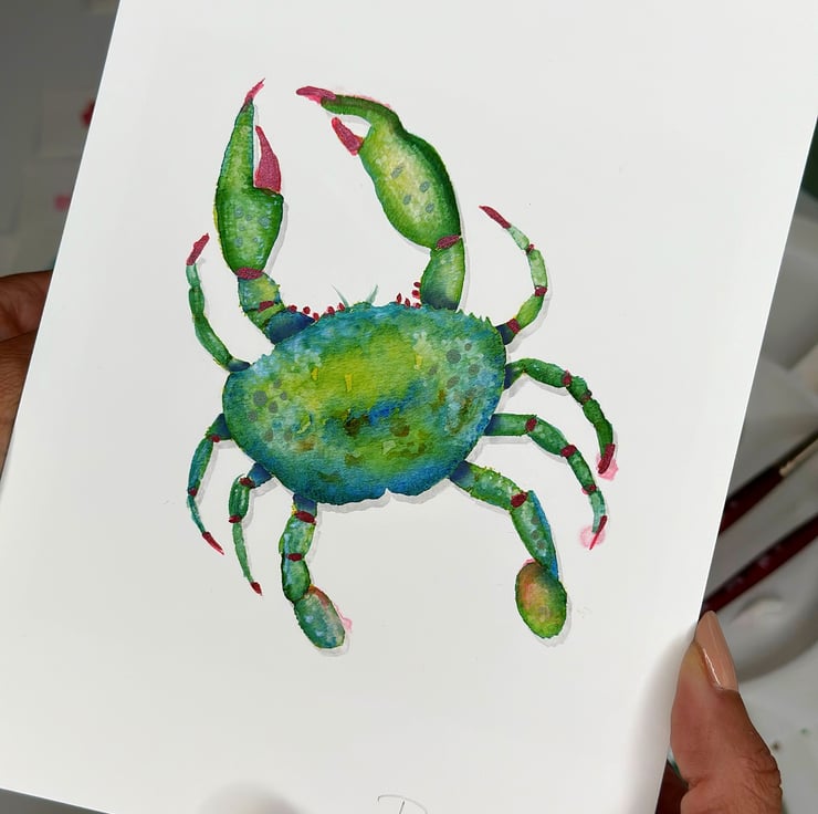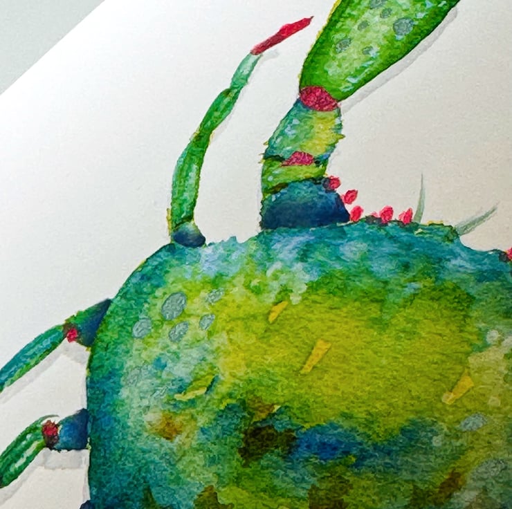 Hand Finished Watercolour A5 Signed Art Print - Teal The Crab