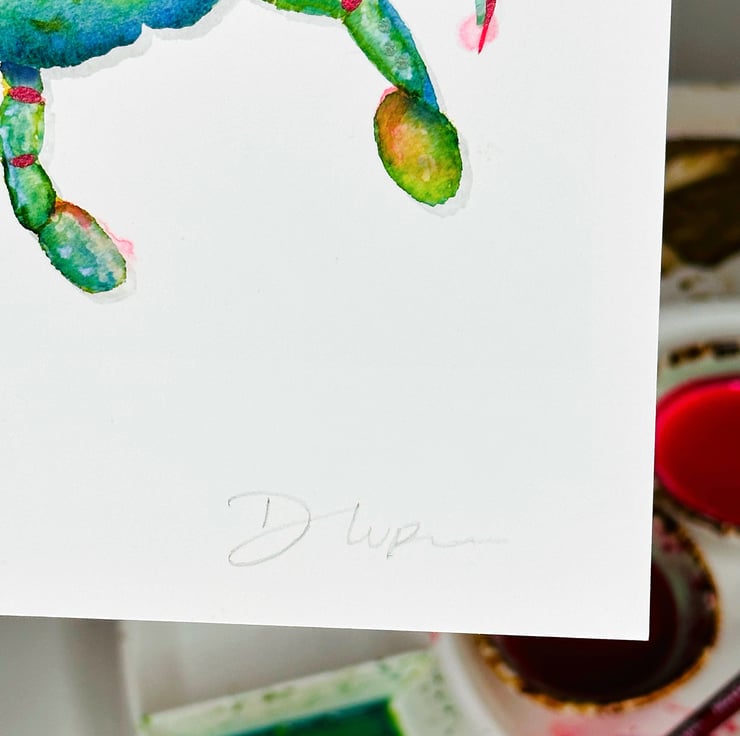 From a small print run each individual print is uniquely hand finished. These are giclee prints on archival fine art paper. A5 in size making them an ideal gift, a fabulous addition to any worktop, desk or wall space.
