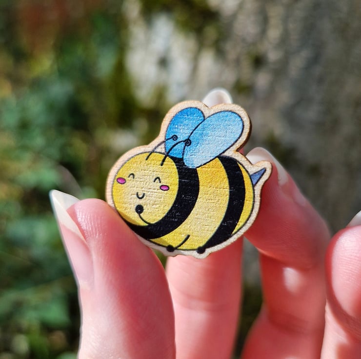 A wooden bee pin that makes a perfect gift for bee lovers, gardeners and more! Crafted from FSC wood with a choice of metal or rubber backing. A bee-autiful eco bumblebee pin that brings cheer to any outfit!