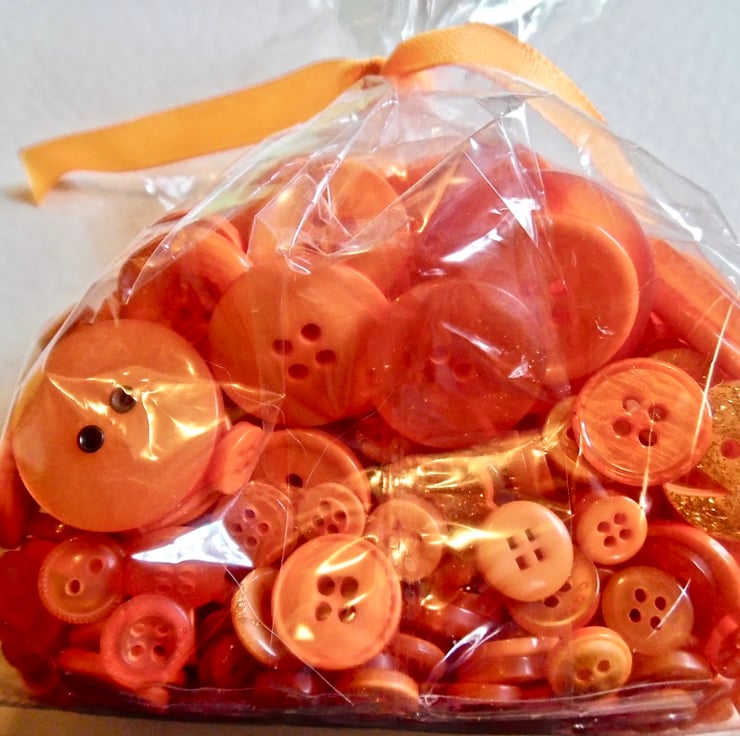 Bumper Bag of 650 Resin Mixed Size Orange Buttons