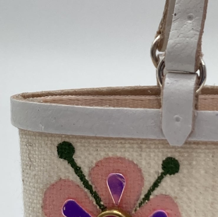 I have hand painted the flowers with acrylic paint and then embellished them with tiny jewels, the key signature for Enid Collins of Texas bags.