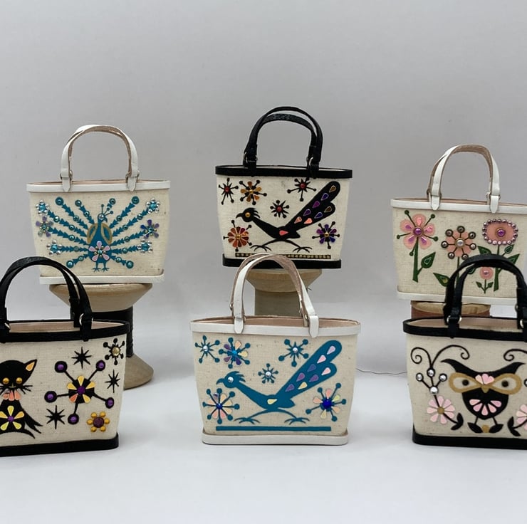 I took the dimensions of an original Enid Collins tote bag scaled them down and slightly simplified the designs so they work in miniature.