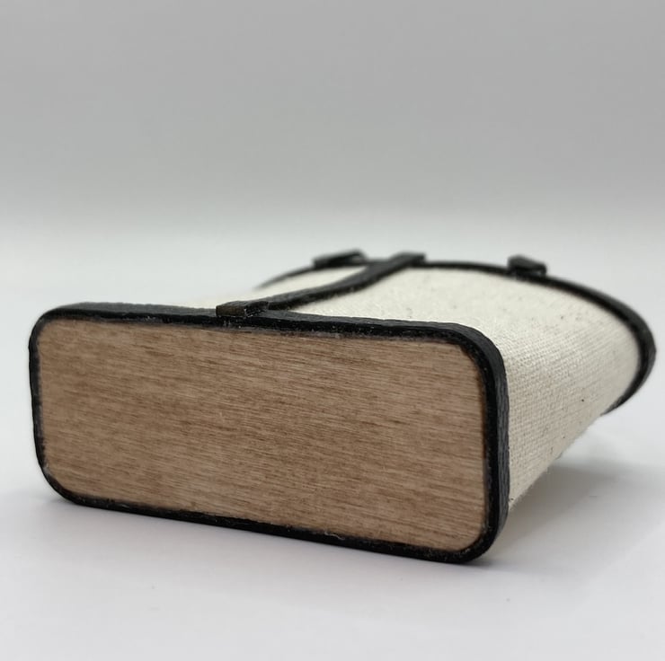 The base is made from wood, the trim and handles are made from leather just like the originals.