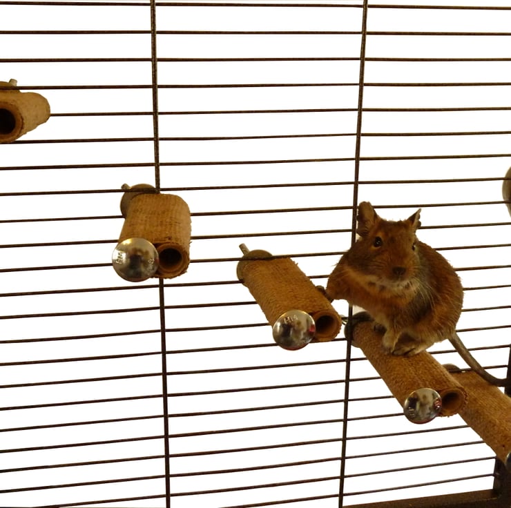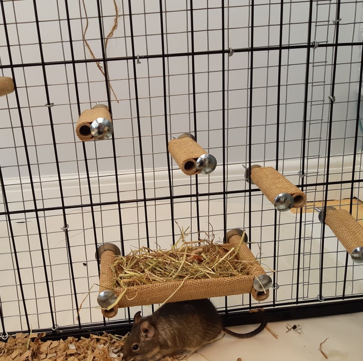 Finding items suitable for Degus was difficult when we started keeping them, so I started designing and making items especially for them. We now have 21 Degus and a business that sells handmade stuff for them.