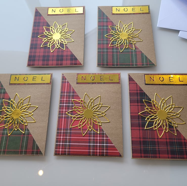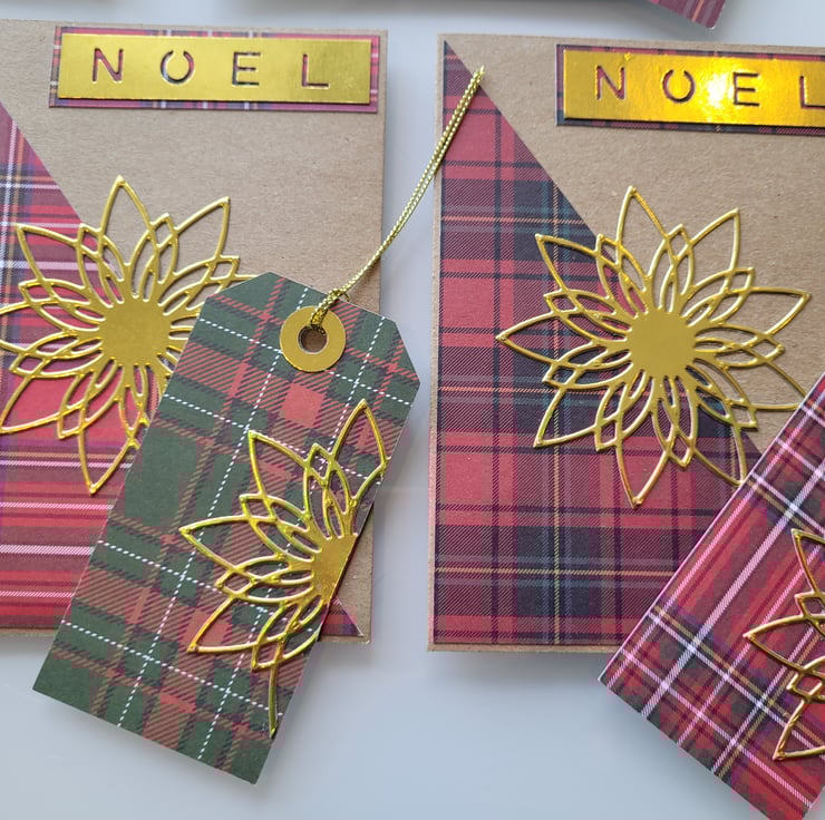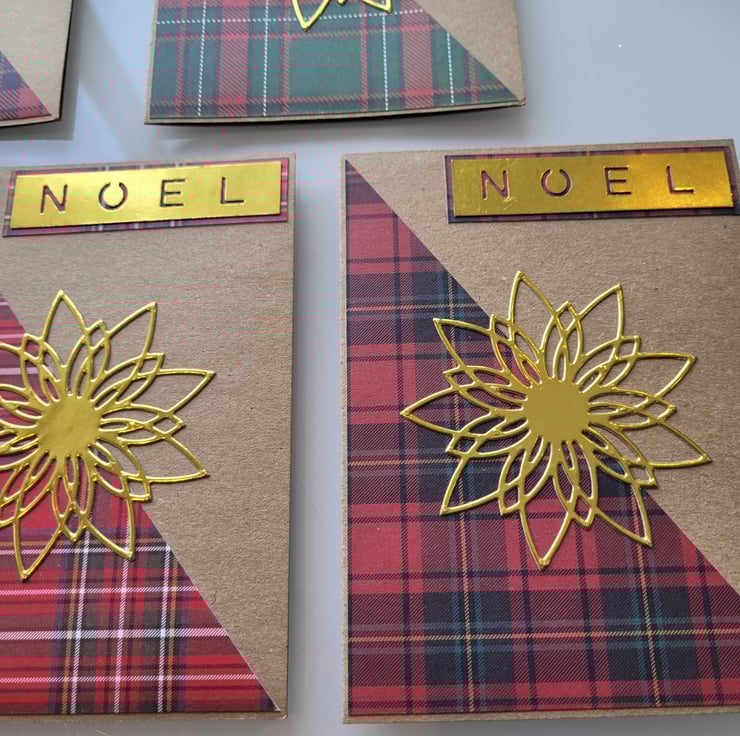 Inspired by my extended family and their love of Scotland, these cards have been made layering a gold die cut card element atop tartan design paper.