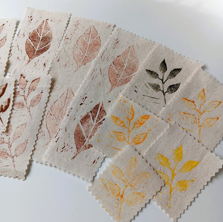 Printed using water based ink on light weight cotton canvas in Autumnal colours.