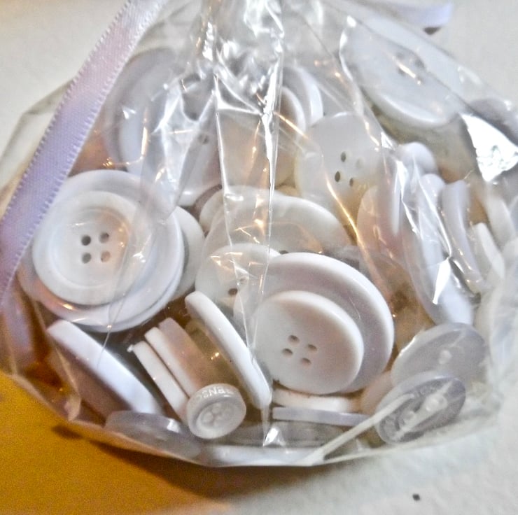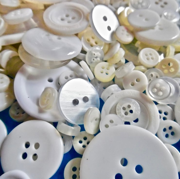 This big bag of buttons contains a selection of Mixed sizes of WHITE resin buttons.