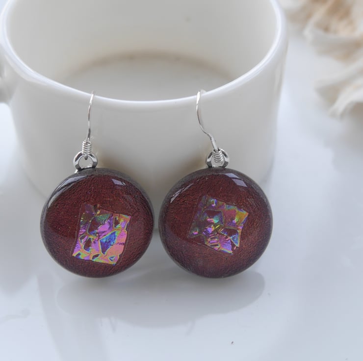 Luxury Dichroic Earrings Fused Glass L008 Sterling Silver hooks
