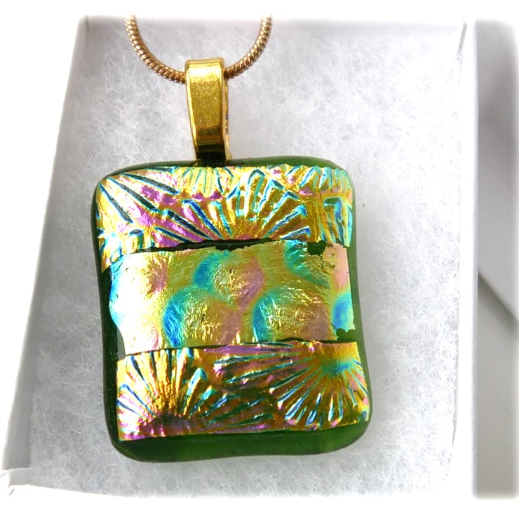 The dichroic glass cabochons for my pendants are all unique and handmade, by me, with love.