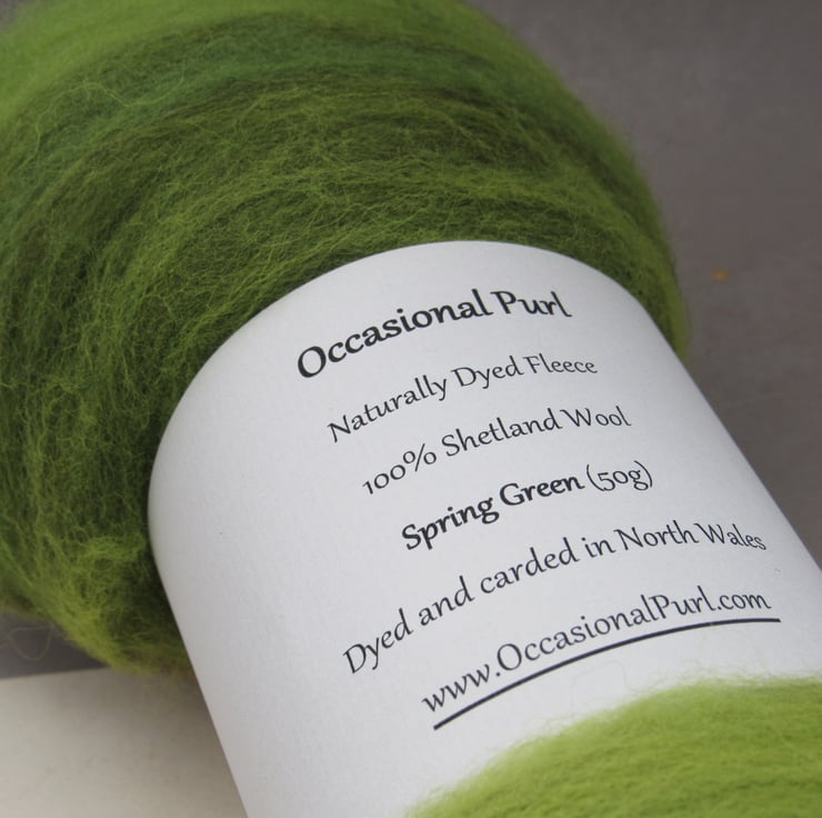 100% British Shetland wool, carefully dyed with weld, then over-dyed with indigo to give a range of rich spring greens.