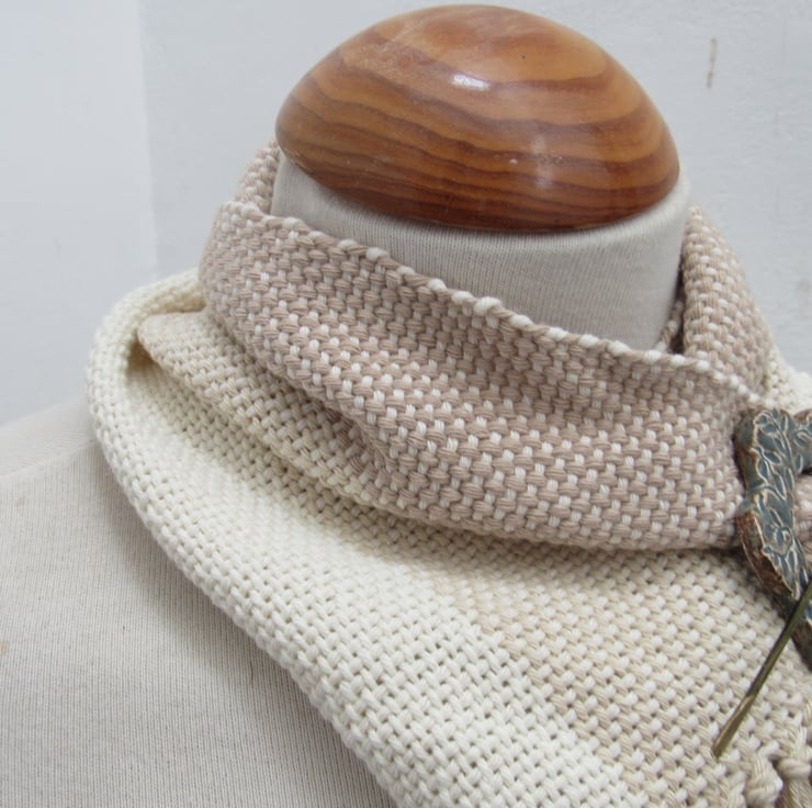 This short scarf can be tucked inside your collar, or fastened with a shawl pin or brooch.
