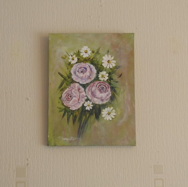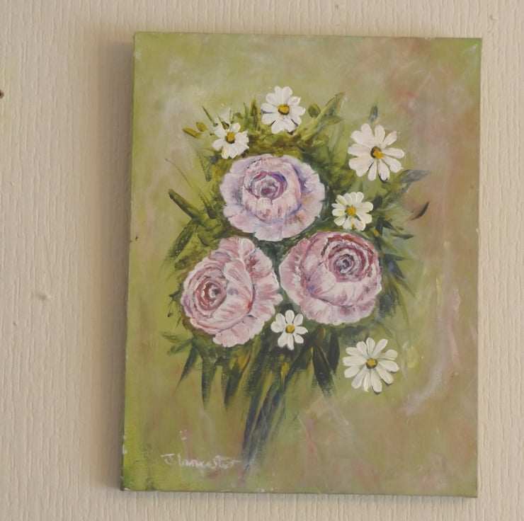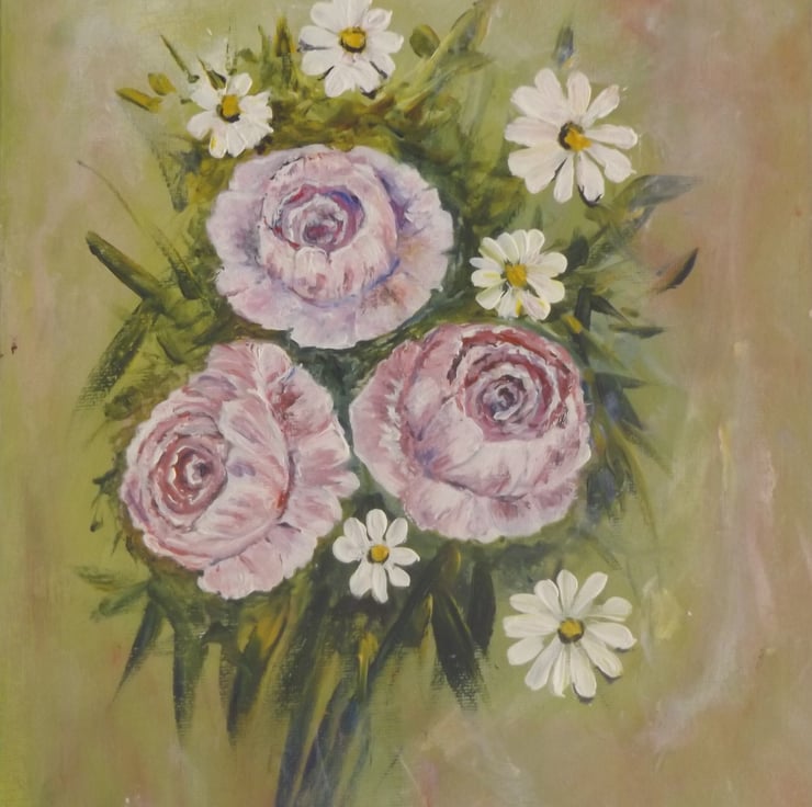 Roses and Daises painted in acrylic on a 9in x 12in stretched canvas.