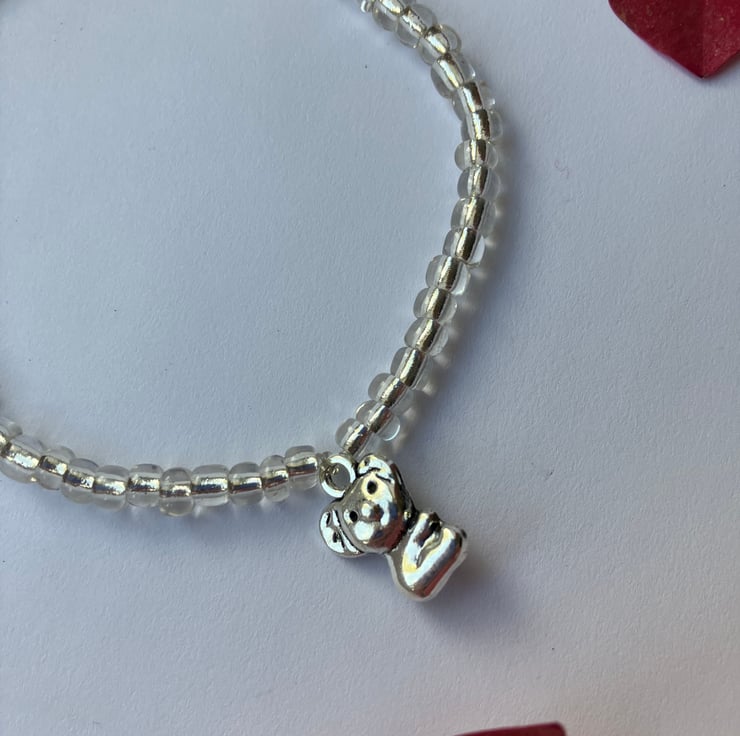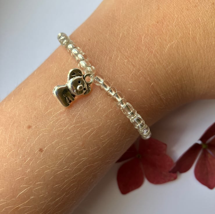 Beautiful bracelets made from sturdy, clear elastic and 3mm glass seed beads.
