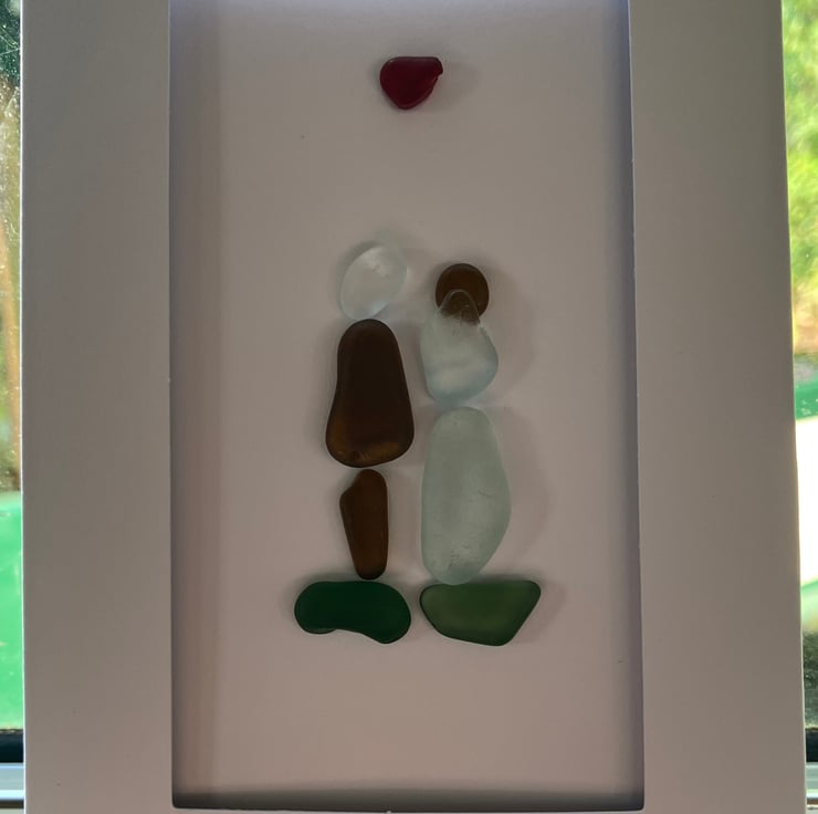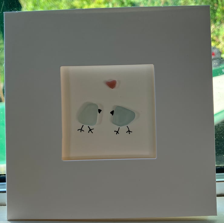 I make unique one-off cards, mainly blank for your own message. I collect the glass from beaches in Kent and Northumberland and create them on my narrowboat. Sea glass is broken glass that's been discarded into an ocean or lake where it is transformed by the tumbling, churning powers of those bodies of water as it breaks into smaller pieces, floats to and fro with rocks, sands and waves until it is converted into a beautiful, flawless, sea glass gem