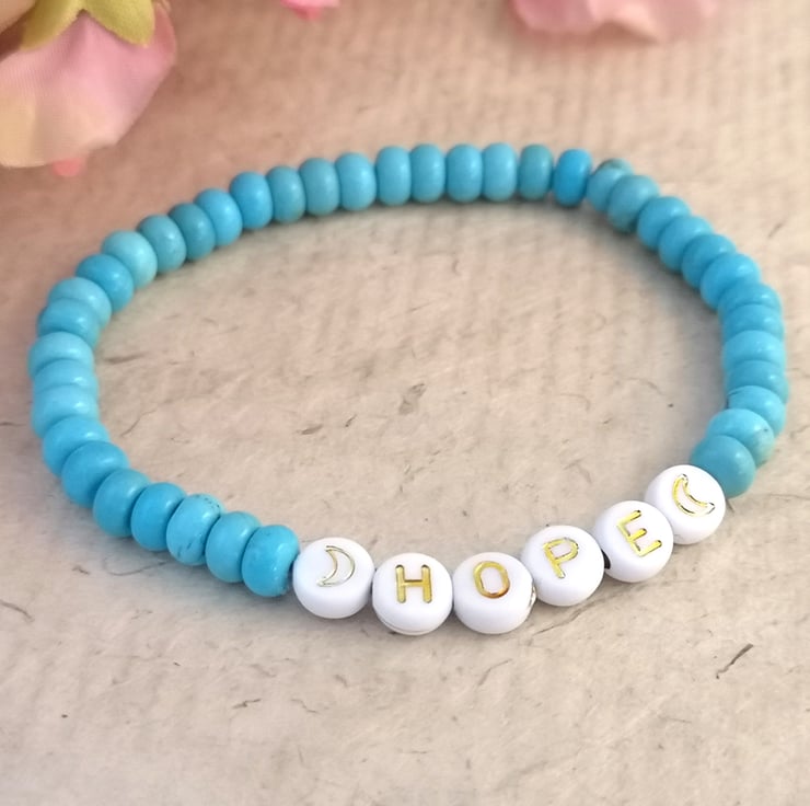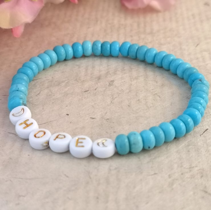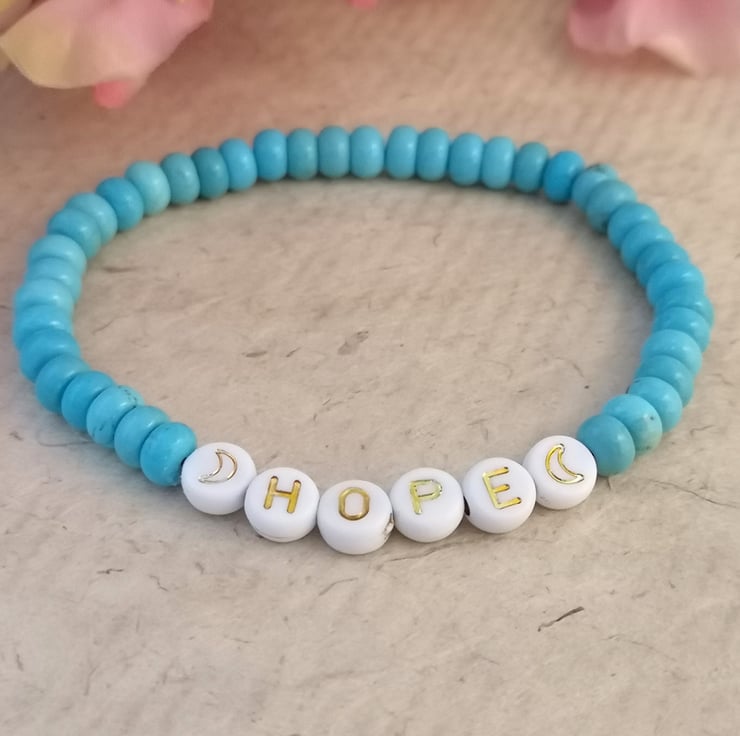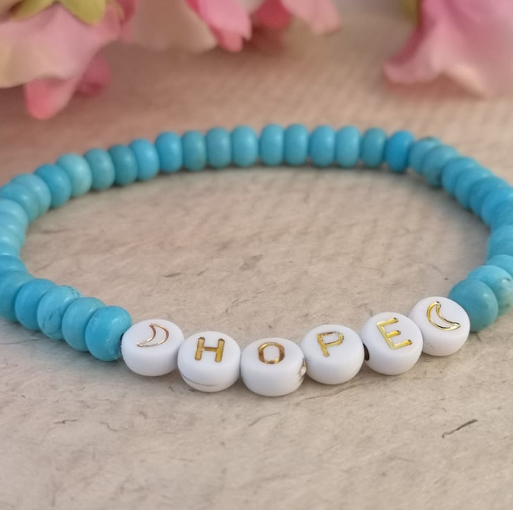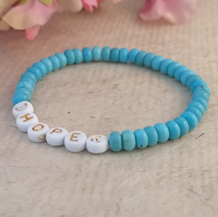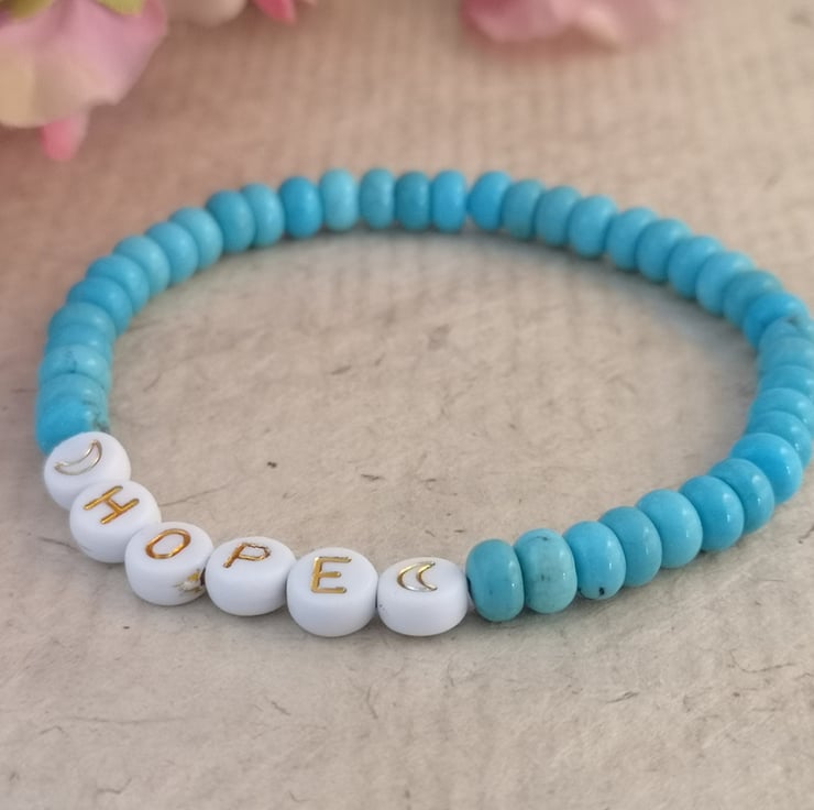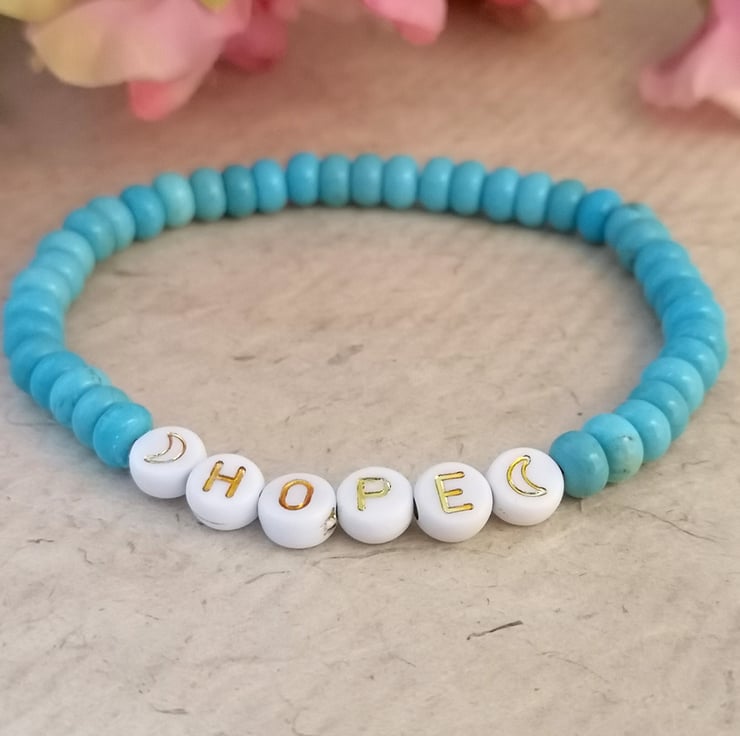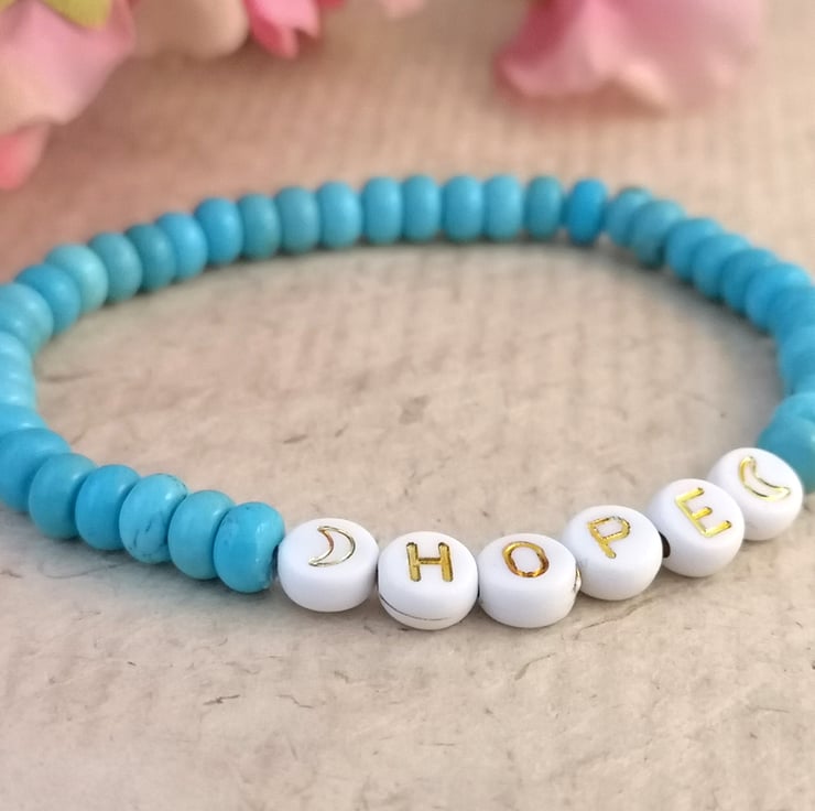"hope" bracelet with blue howlite beads