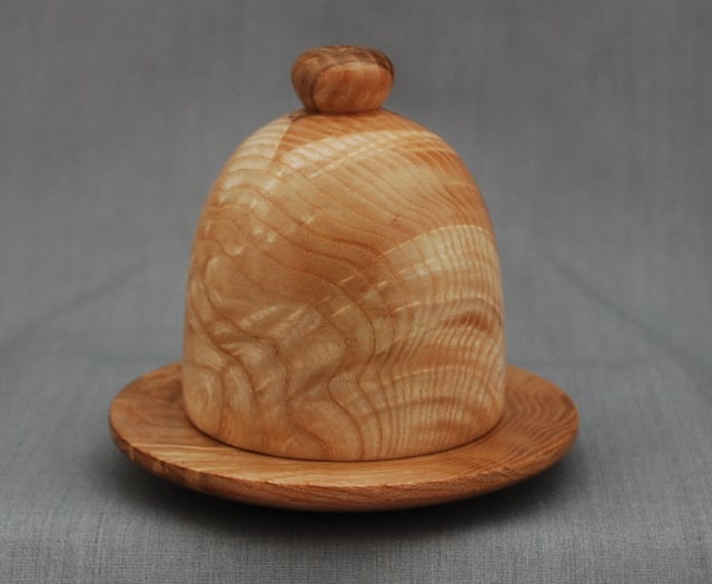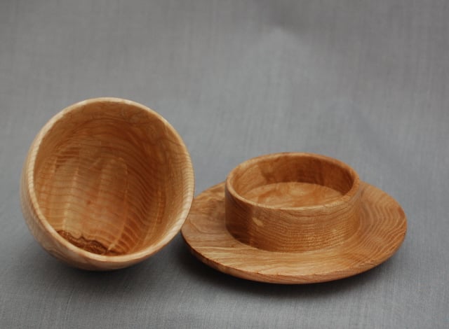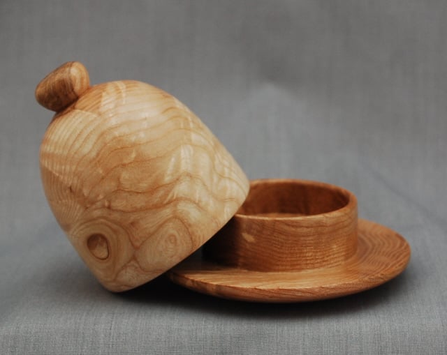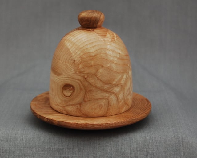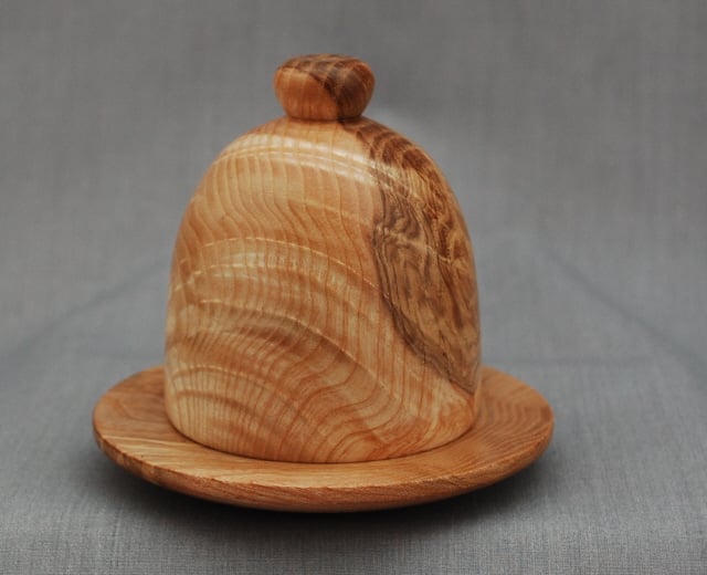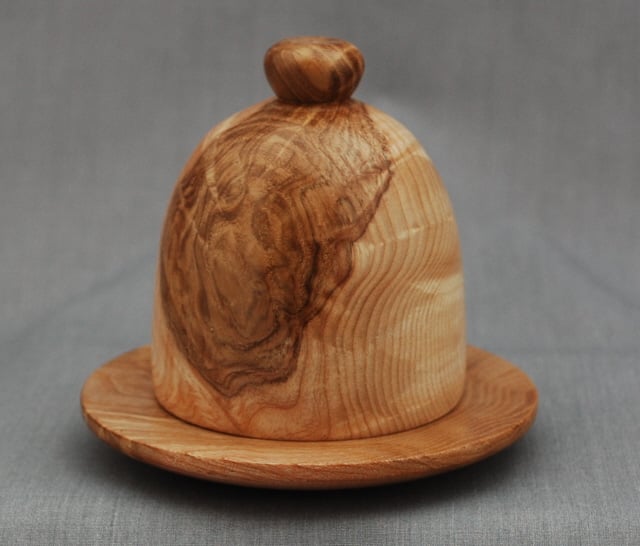 Randal has made this keepsake cloche and base from “olive” ash-so named for the grain colouring that is similar to true olive wood. These pieces are even more exceptional in that they both have ripple in the grain as well.