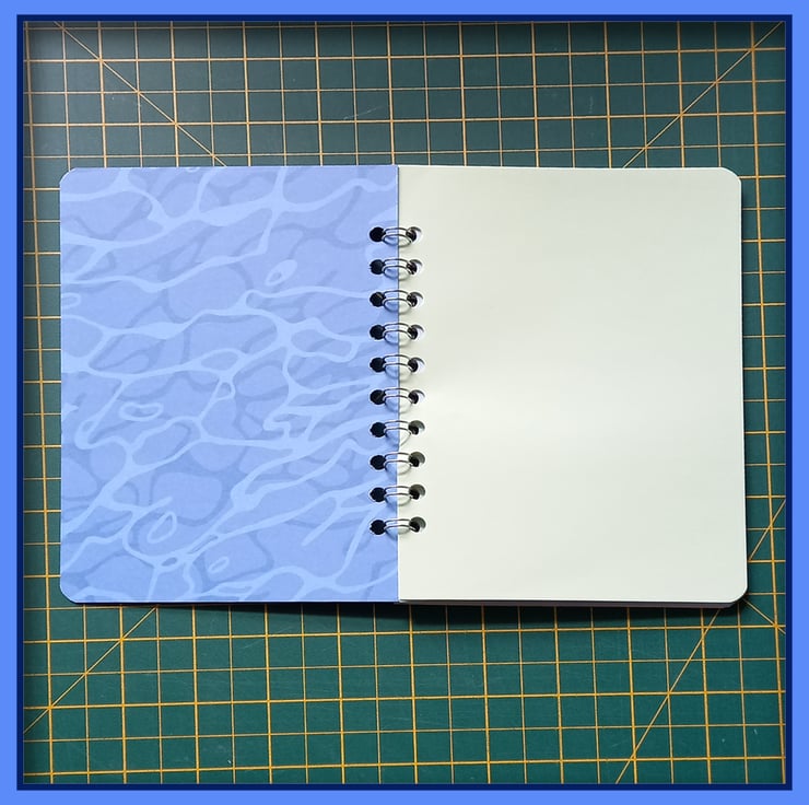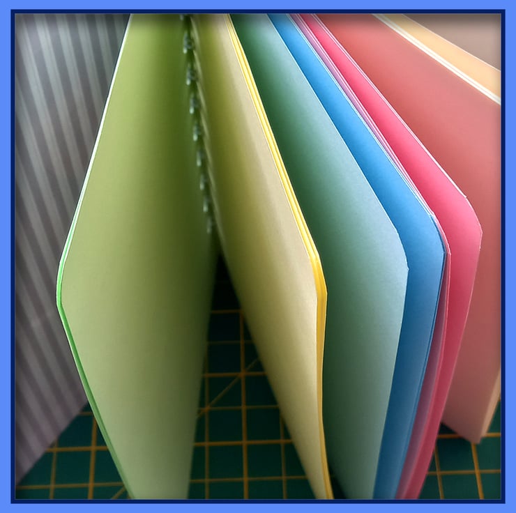 This sprial wire bound Note book has a front cover made from the front of a humorous greeting card, for knitting head gear, there are 20 pages (40 sides) of plain multi coloured paper, which have been sprial bound with silver wire, the back cover is silver card. The over all size is 12cm wide by 17cm high, ideal size to pop in a coat pocket or bag, ready for you jot down notes or sketch.