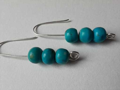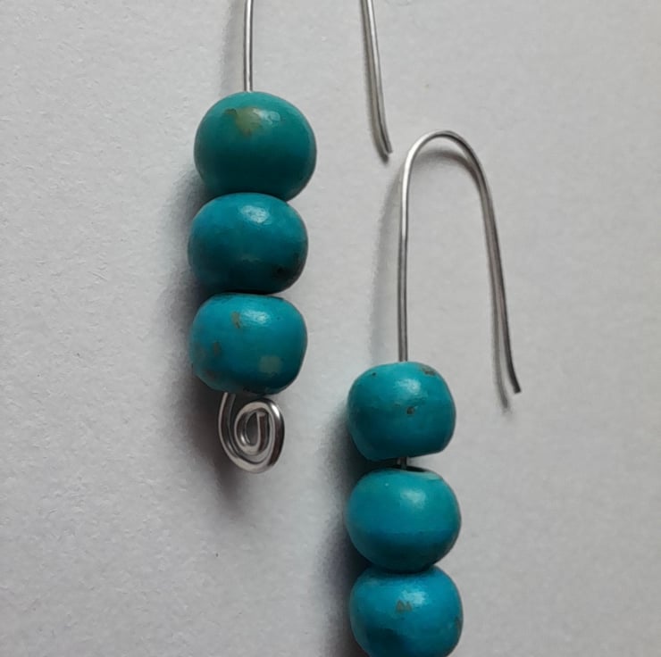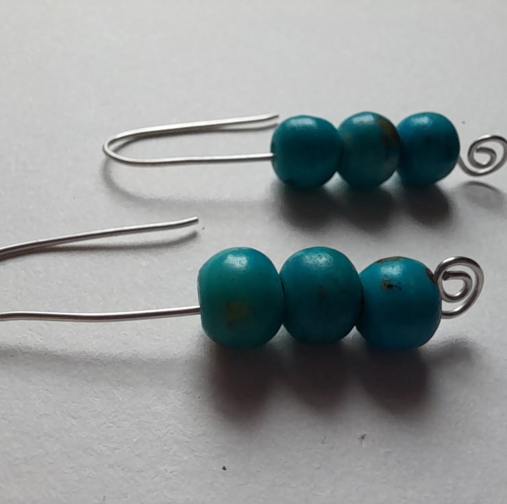 Very pretty turquoise coloured beads set in recycled silver drop earrings
