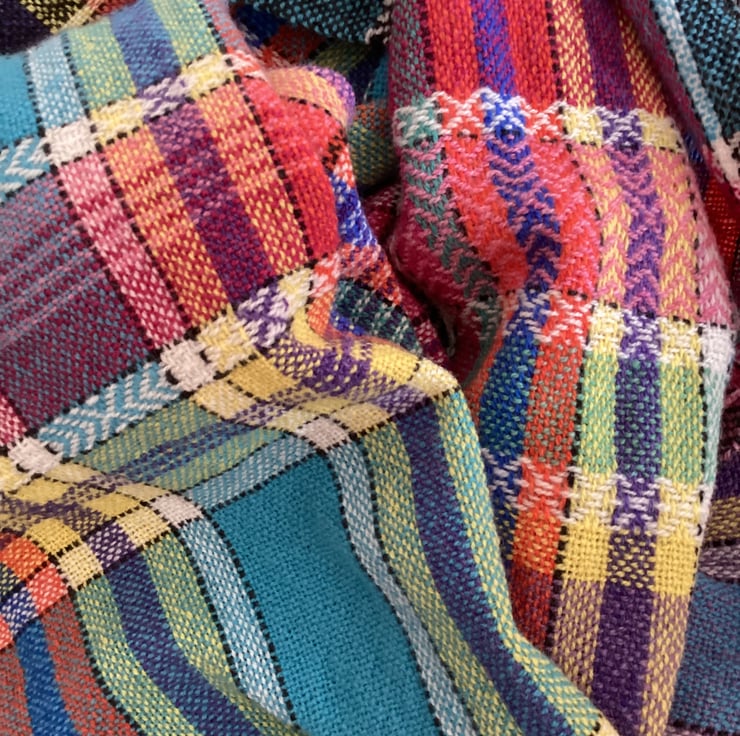 “Aurora” is a scarf designed and handwoven by me in plain weave with some point twill detail using soft Merino Lamswool.