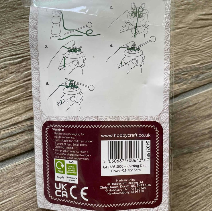 Not suitable for children under 3 due to small parts and choking hazard. The knitting dolly contains sharp points or edges so should only be used under adult supervision.