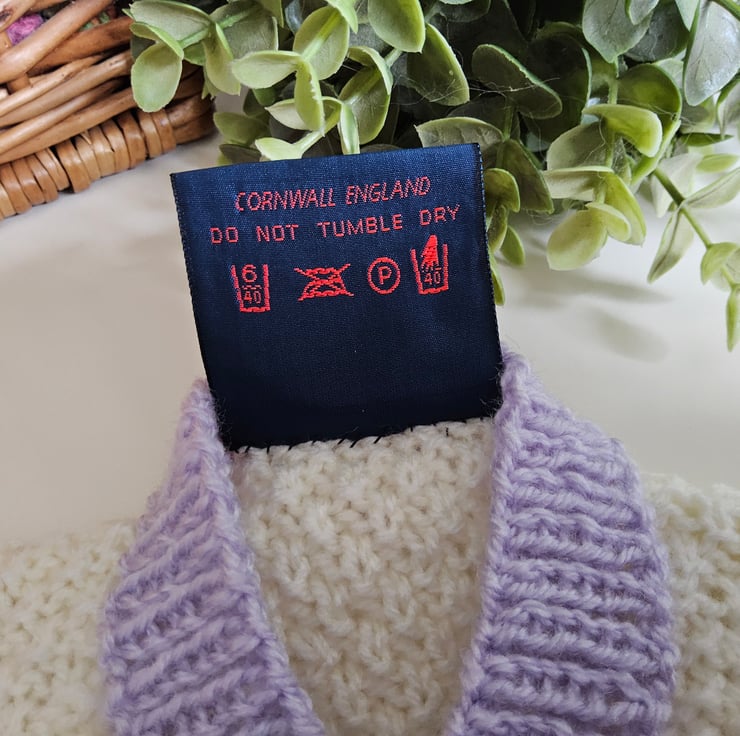 On the cardigan back neck the branded luxurious Demelza Designs garment label (also made in Cornwall) has the care instructions woven within it on the reverse side for lasting reference. Prior to dispatch a branded Demelza Designs garment swing tag will be attached to the front yoke to provide a professional touch one would expect from designer products, especially if gifting for a newborn baby.