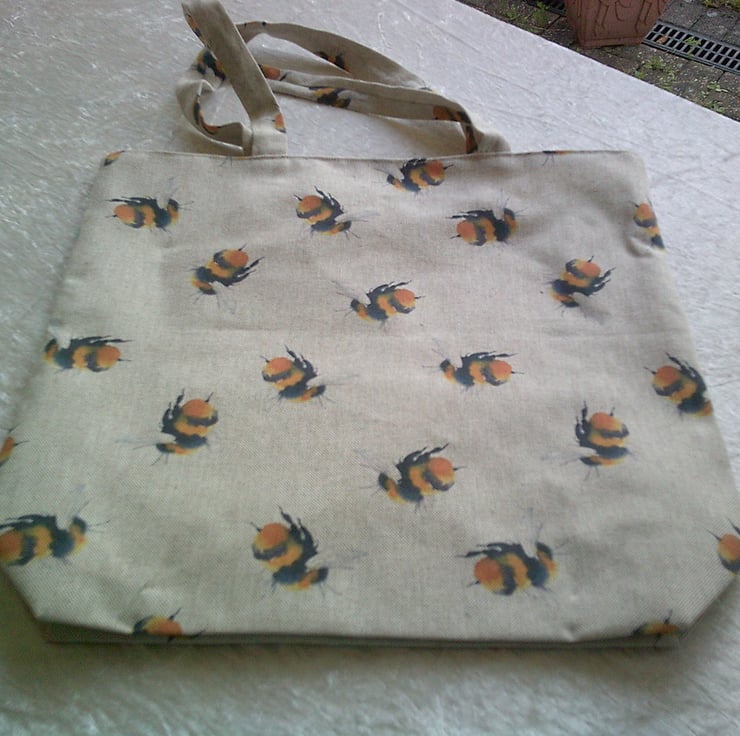 This Eco Friendly, fabric bag is made using 100% Cotton and features colourful floral beetle cars on a blue background and it is fully lined and machine washable.